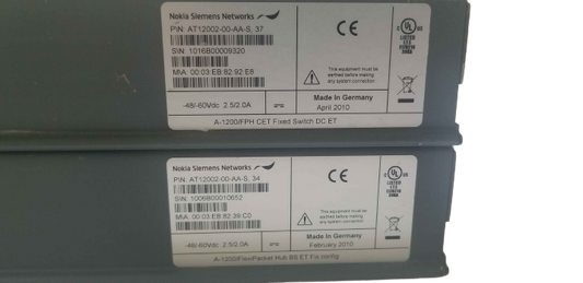 Nokia Siemens Networks A-1200 Ethernet Access Switch2x Nokia Siemens Networks A-1200 Ethernet Access Switch1x Nokia Siemens Networks A-1200/FPH CET Switch48-60VDC 2-2.5AModel AT12002-00-AA-S 37 1x Nokia Siemens Networks A-1200/FlexiPacket Hub BS ET Fix Config 48-60VDC 2-2.5AModel AT12002-00-AA-S 34Made in Germany Price here is per Lot