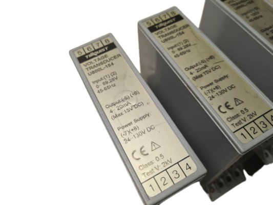 Tillquist U800L-154 transducer for voltage power supply3x Tillquist U800L-154 transducer for voltage power supply Input 0...69.28V 45-65 HZ Output 4..20mA max 15V DC Power supply 24-130V DC The price here is per Lot