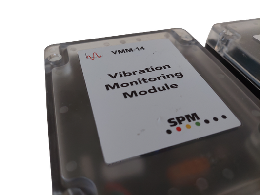 SPM VMM-14 Vibration Monitoring Module2x SPM VMM-14 Vibration Monitoring Module Model VMM-14 Channel vibration monitoring module Frequency range: 10 to 1000 Hz Power Supply 12 - 24 V DC. Dimensions 110 x 149 x 56 mm weight 280 g Country of origin Sweden Price here is per Lot
