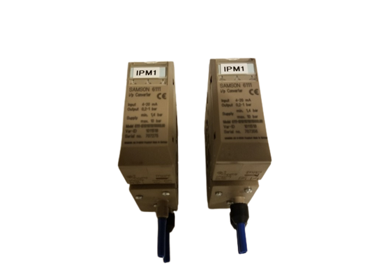 1x Samson Type 6111 i/p Converter ELECTROPHEUMATIC 4-20mA 0.2-1.0 BARUp for Sale: 1x Samson Type 6111 i/p Electro-Pneumatic Converters (4-20mA, 0.2–1.0 BAR) Upgrade your control systems with the Samson Type 6111 i/p Converter, a high-performance electro-pneumatic solution designed to convert electrical input signals into precise pneumatic output signals. Ideal...