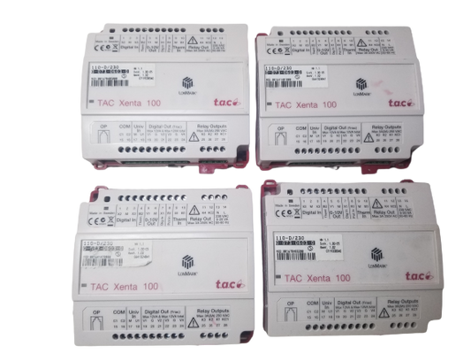 Schneider Electric TAC Xenta 110-D/230 LonMark Dual Zone Controller4x Schneider Electric TAC Xenta 110-D/230 LonMark Dual Zone Controller Supply voltage 230 V AC ±10%, 50–60 HzController with TAC Xenta OP 5 VADigital outputs, individual outputs and total max. 12 VATotal max. 20 VAAmbient TemperatureStorage –20 °C to +50...